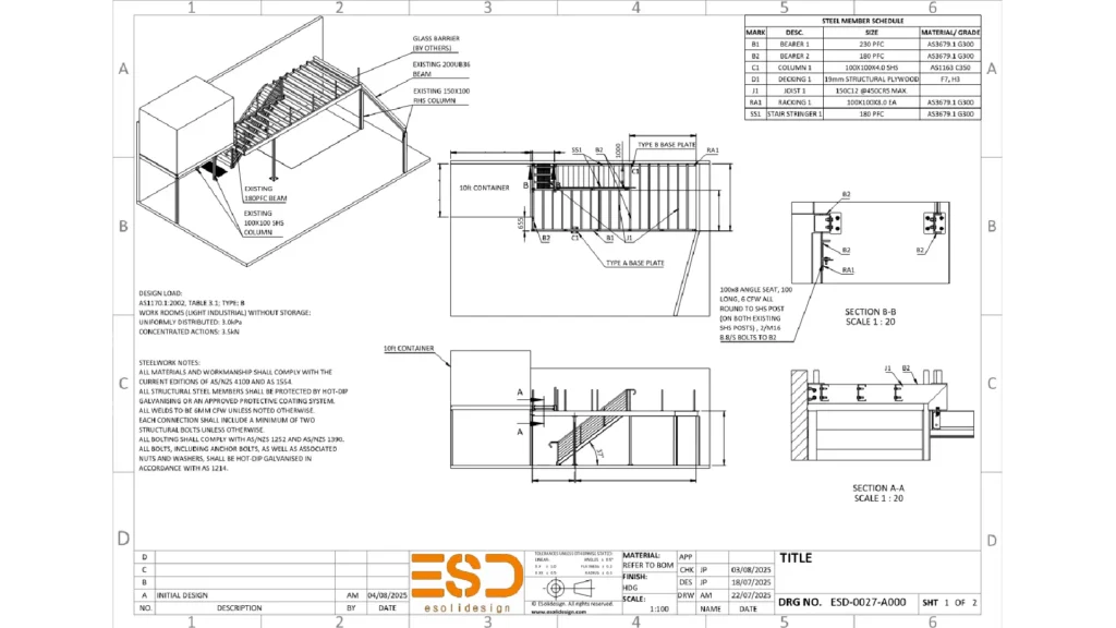 The final layout achieved full compliance with AS1428 and AS1657, including proper rise and going, minimum landing size, and handrail geometry.